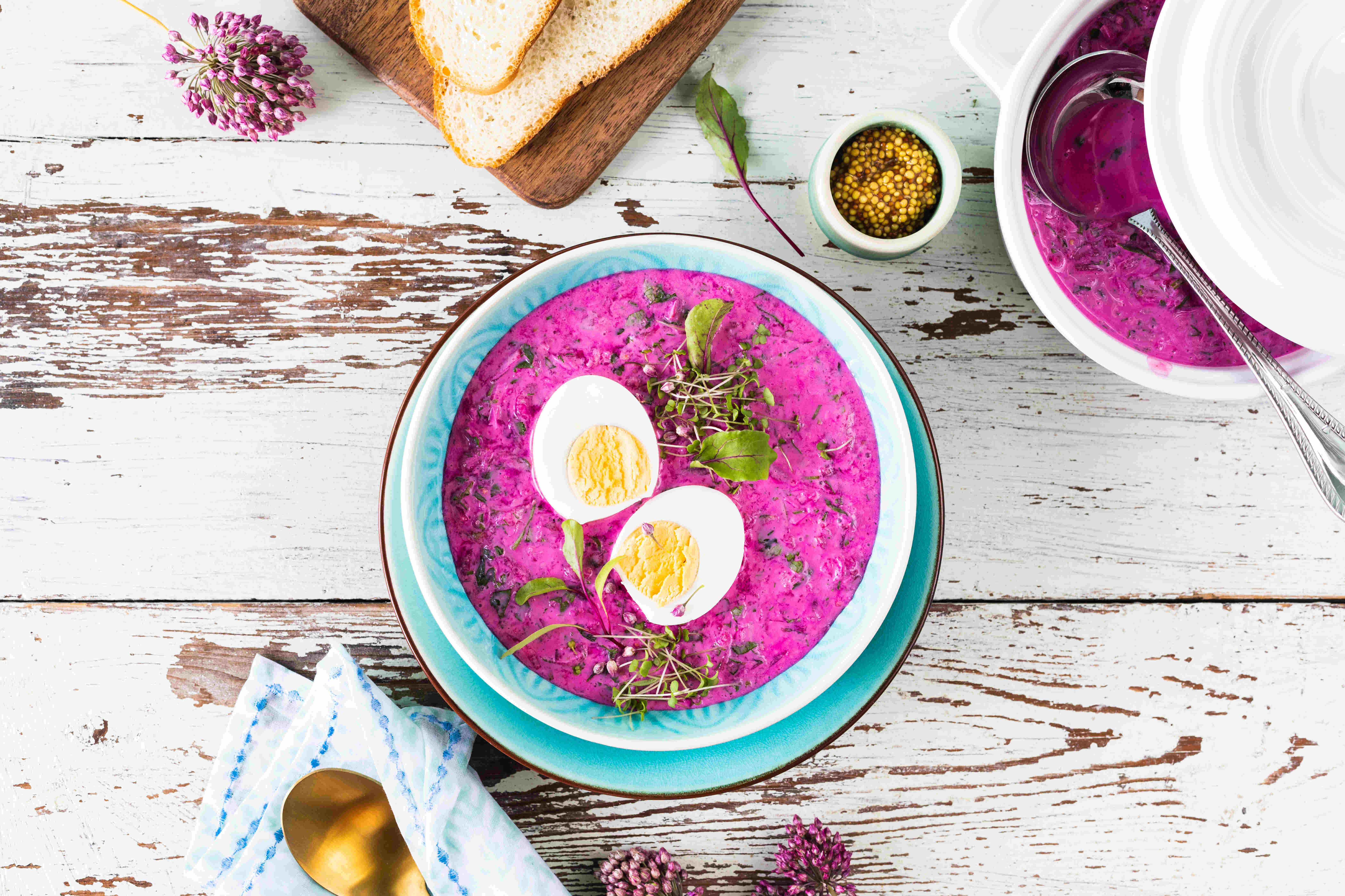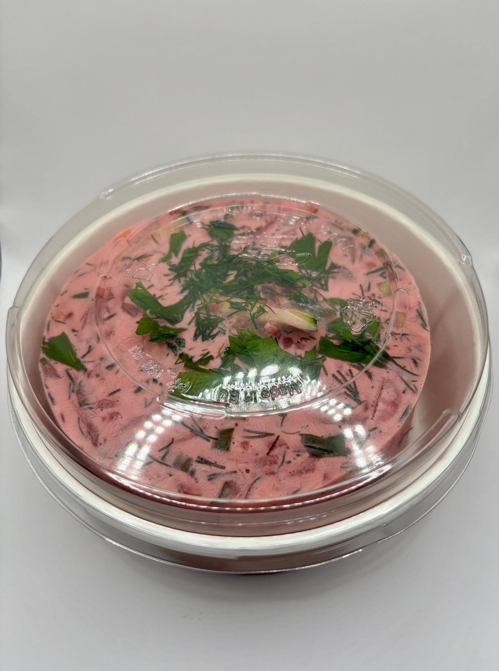 Sudedamosios dalys: Kefyras 3,2 % (48 %), burokėliai (29 %), švieži agurkai (12 %), vištų kiaušiniai (5 %), krapai, baltasis kristalinis cukrus, obuolių actas 6 %, valgomoji druska, svogūnų laiškai, petražolės, malti juodieji pipirai.