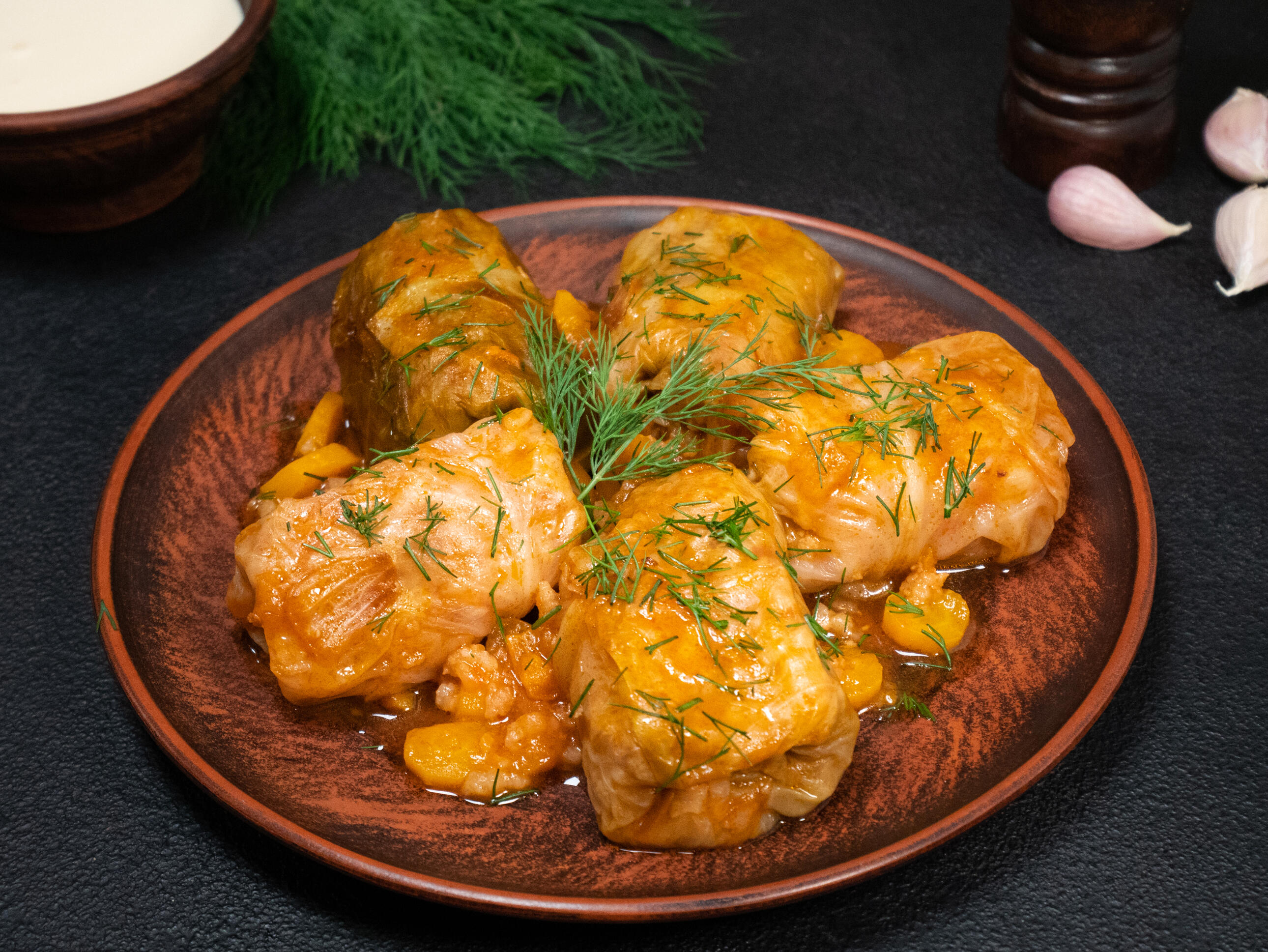 Sudedamosios dalys: kopūstai, kiauliena (19%), ryžiai, svogūnai, morkos, rafinuotas saulėgrąžų aliejus, druska, malti juodieji pipirai.