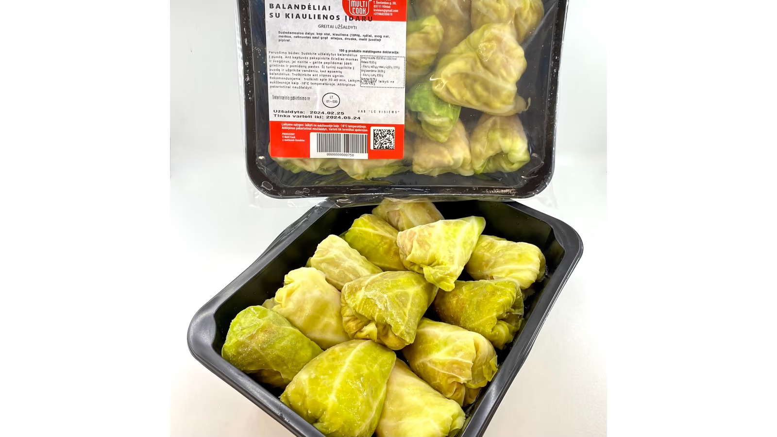 Pagrindinių sudedamųjų dalių kilmės šalis: kopūstai, kiauliena – Lietuva.
