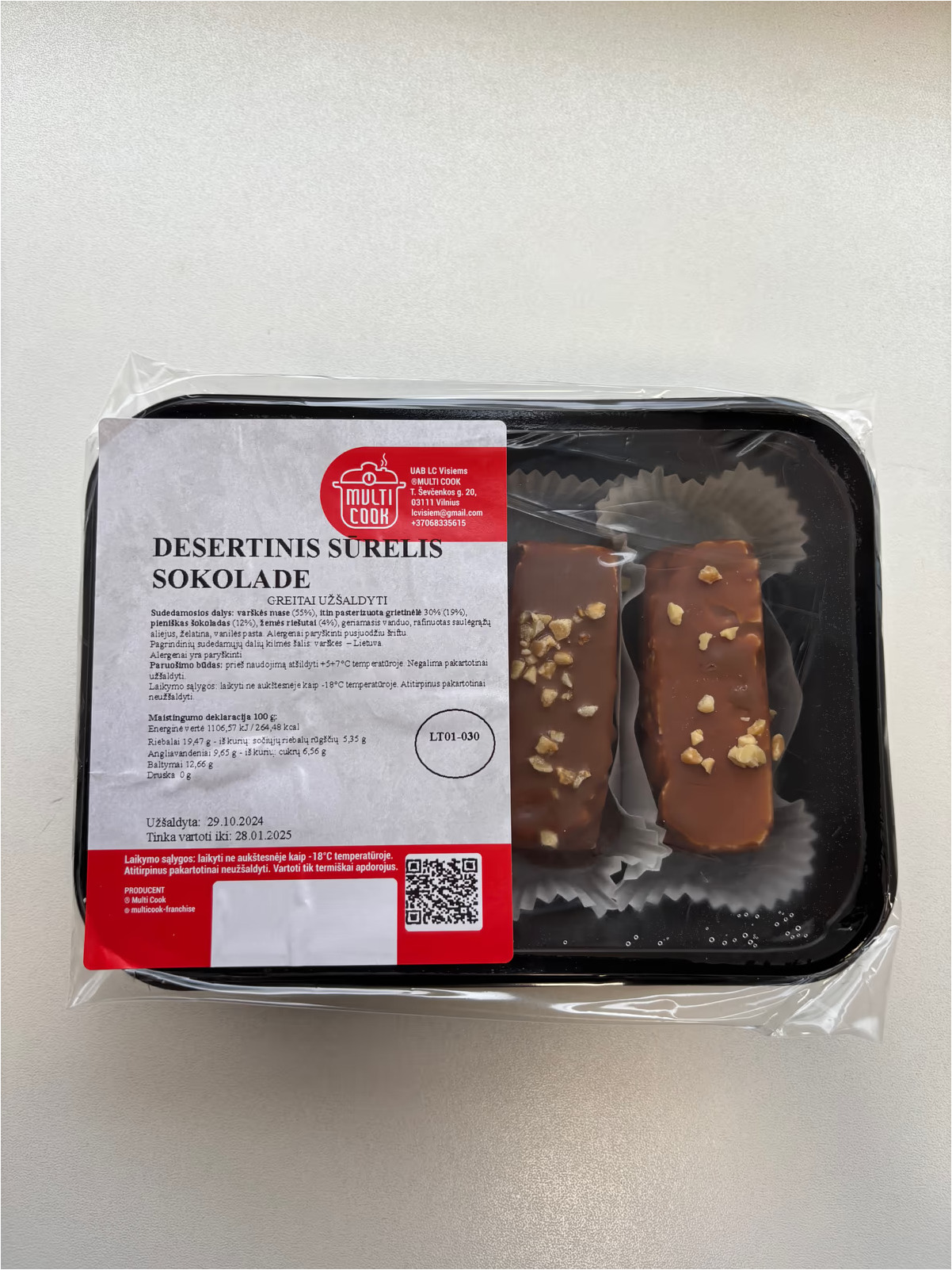 Sudedamosios dalys: varškės mase (55%), itin pasterizuota grietinėlė 30% (19%), pieniškas šokoladas (12%), žemės riešutai (4%), geriamasis vanduo, rafinuotas saulėgrąžų aliejus, želatina, vanilės pasta.