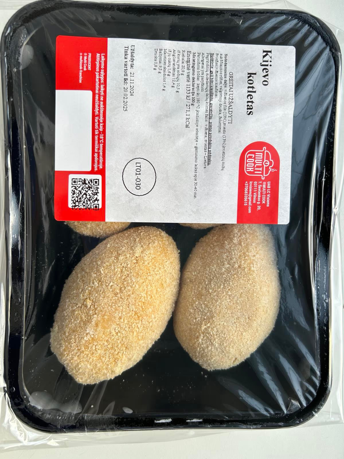 Sudedamosios dalys: vištienos filė (13 %), sviestas (13 %), kvietiniai miltai aukščiausios rūšies, valgomoji druska, miltai, švieži žalumynai, vištienos kiaušiniai.