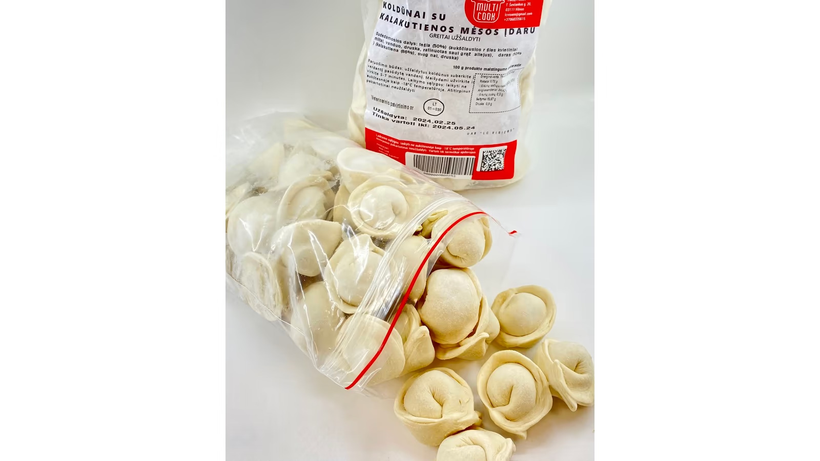 Pagrindinių sudedamųjų dalių kilmės šalis: miltai, sviestas, kalakutiena – Lietuva.