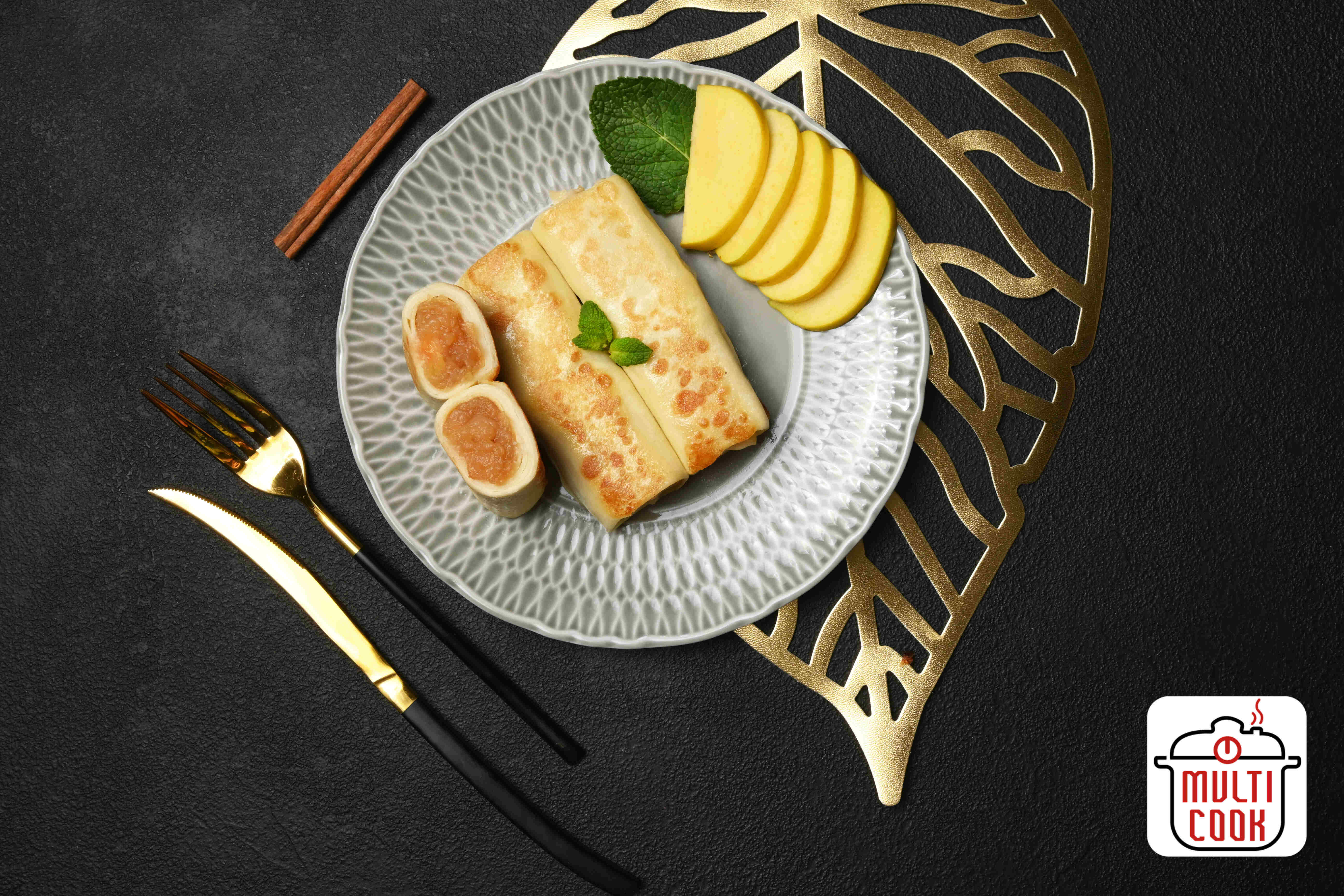 Lietiniai blynai su karamelizuotų obuolių įdaru