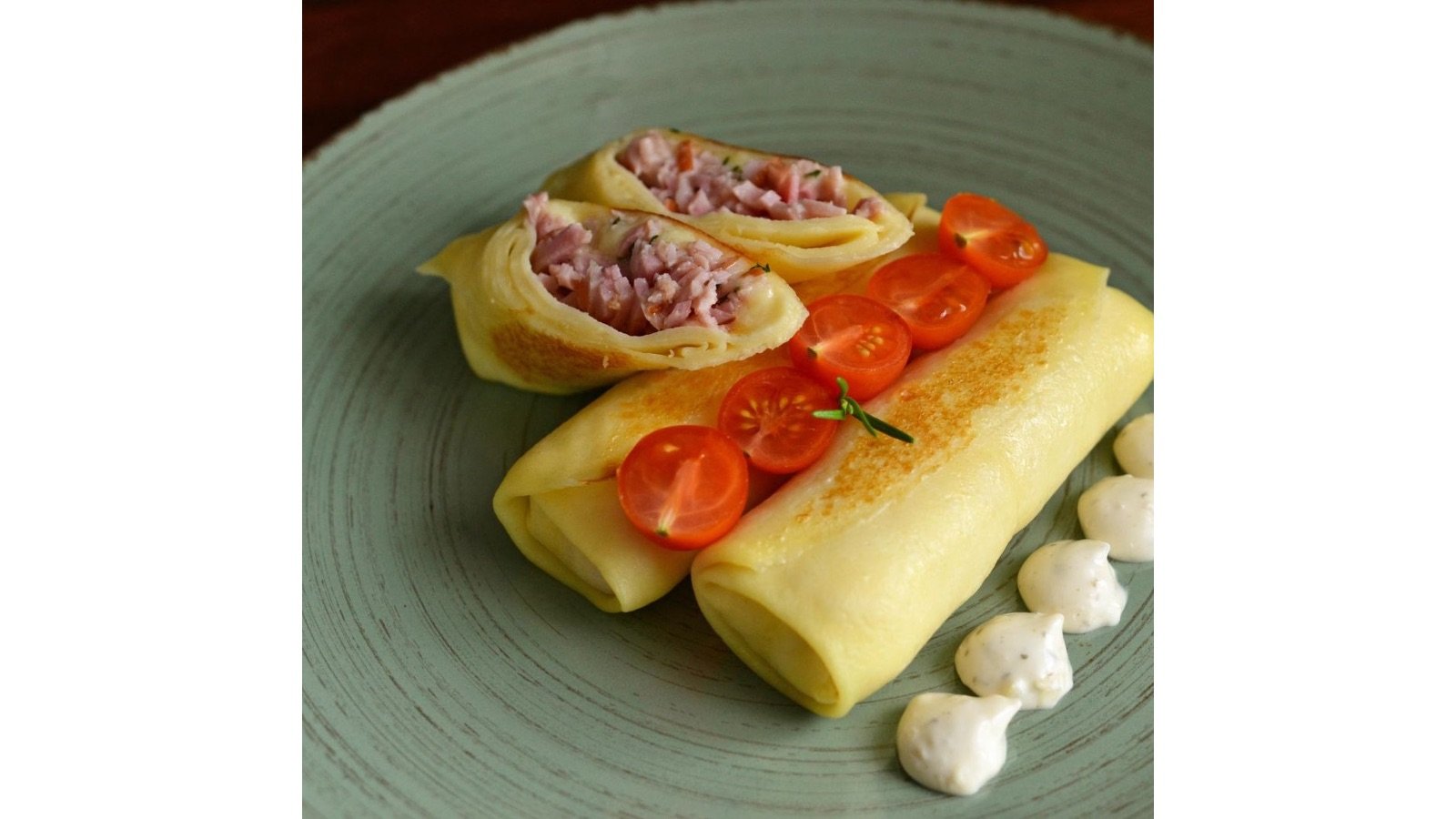 Lietiniai blynai su kumpio ir sūrio įdaru