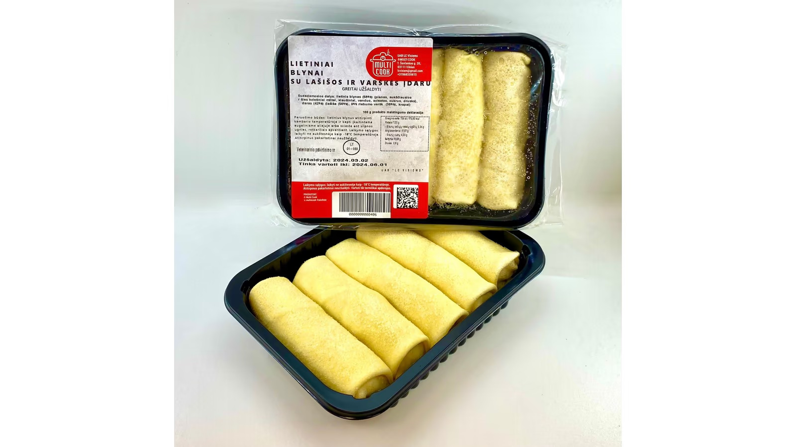 Pagrindinių sudedamųjų dalių kilmės šalis: miltai, sviestas, pienas, varškė – Lietuva, lašiša – ES.