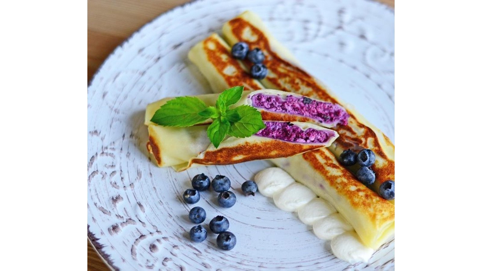 Lietiniai blynai su varškės ir mėlynių įdaru