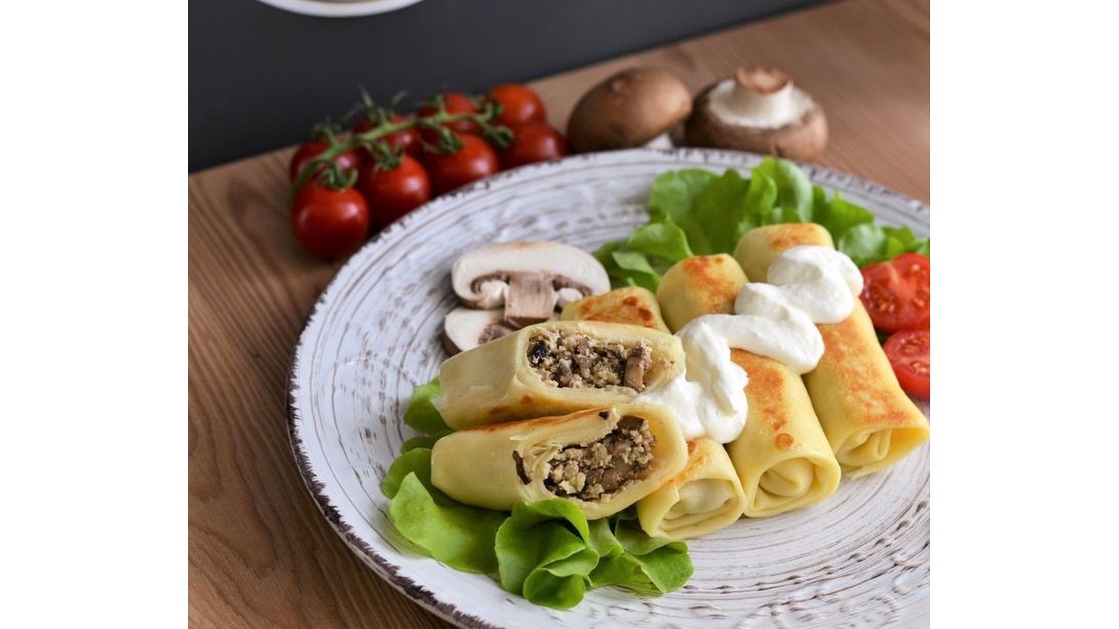 Lietiniai blynai su vištienos ir pievagrybių įdaru