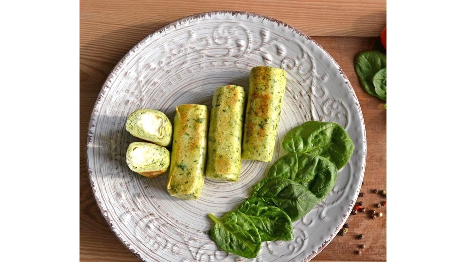Špinatų lietiniai blynai su kreminio sūrio įdaru