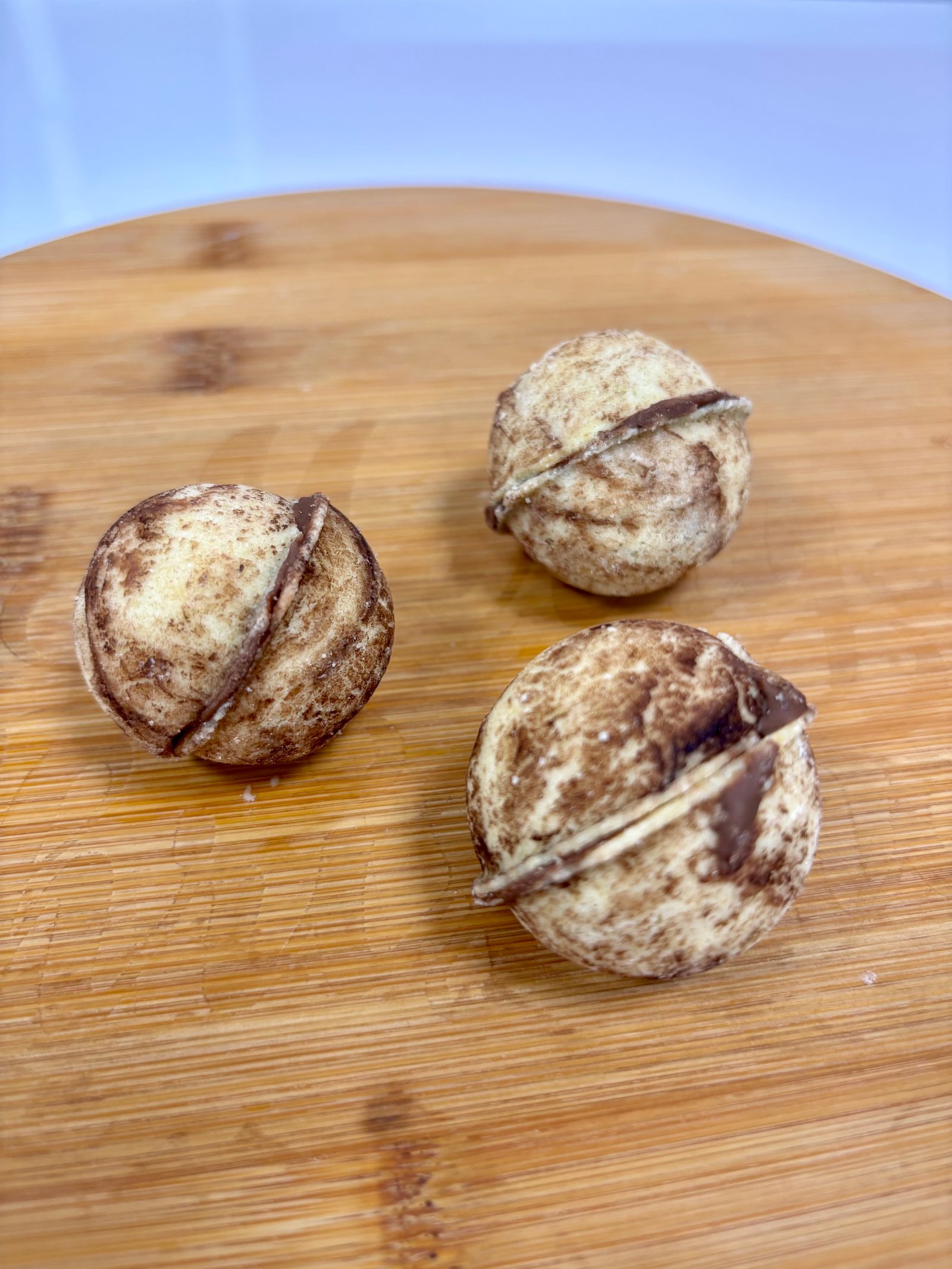 Sudedamosios dalys: šokolado pasta (20,1%), kvietiniai miltai (19,2%), sviestas (14,8%), pienas šokoladas (9,9%), baltasis šokoladas (9,9%), grietinėlė (7,5%), kiaušiniai (6,5%), cukrus (6,4%), grietinėlės sūris (4%), kakavos (0,8%), vanilinis cukrus (0,4%), soda (0,2%), druska (0,13%)