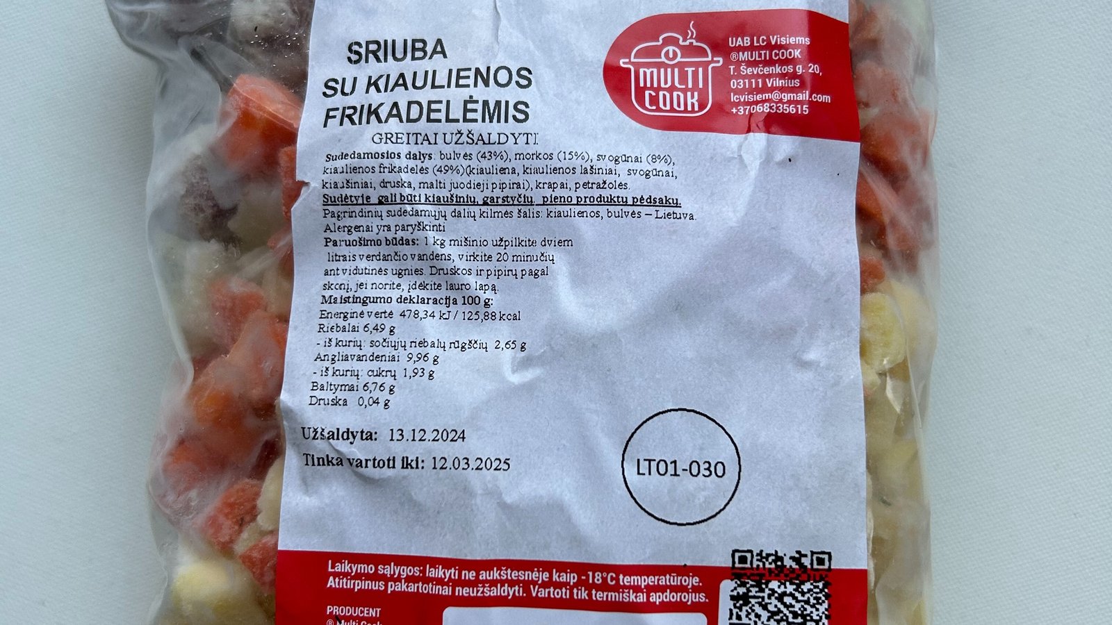 Ranku darbo produkcija gaminama atviroje virtuveje Multi Cook Visiems parduotuveje, adresu T. Sevcenkos g. 20. Supakuotu prekiu svoris gali siek tiek skirtis nuo nurodyto uzsakyme.