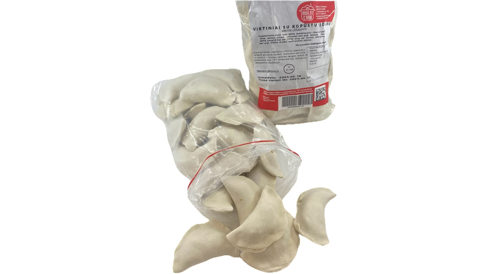 Pagrindinių sudedamųjų dalių kilmės šalis: kvietiniai miltai, kopūstai, sviestas – Lietuva.